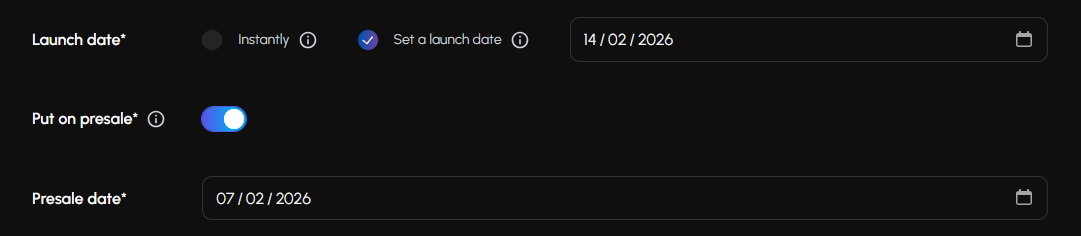 You can also choose whether the drop goes live immediately or at a future release date, with an optional pre-sale date.