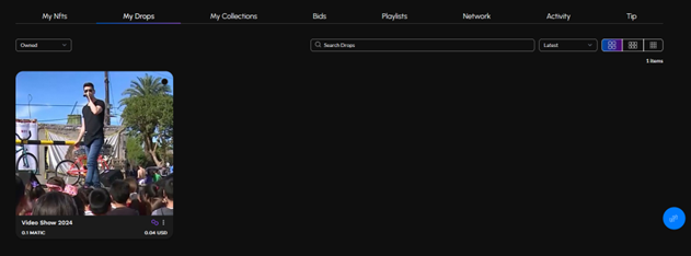 Your created drops will appear in your profile under "My Drops" and on the SPOZZ Marketplace and streaming app.
