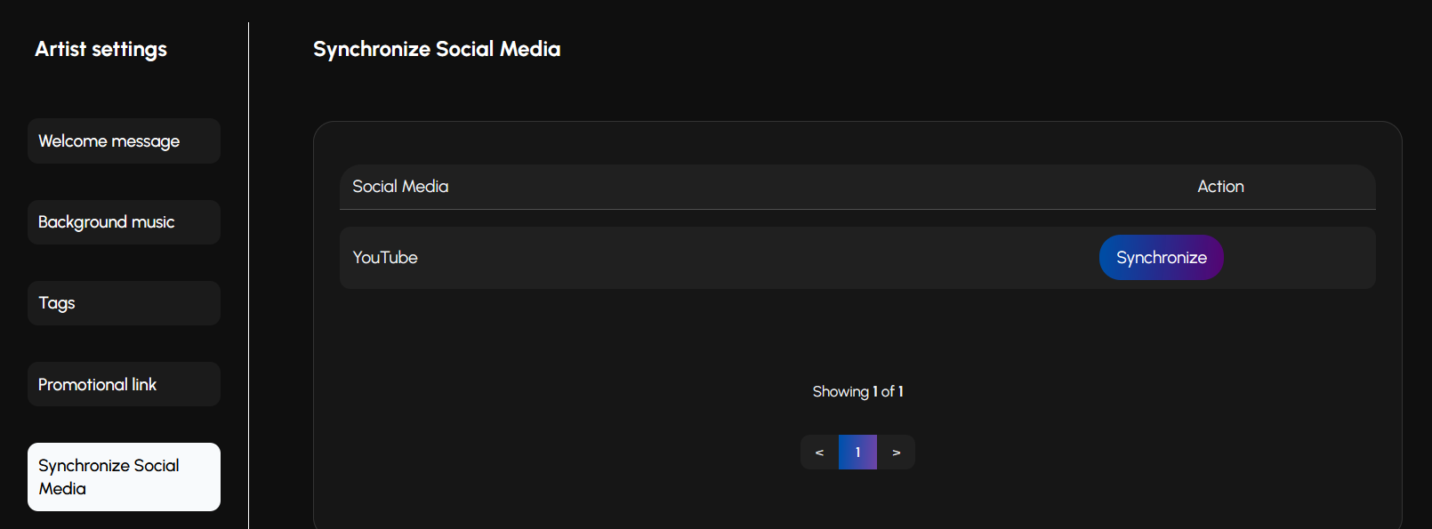 2. Haz clic en la pestaña “Social Media”. Allí, haz clic en los botones respectivos para asociar tu cuenta con Youtube.