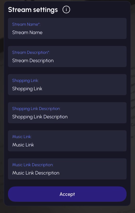 Tras abrir la app, completa los siguientes campos de tu transmisión: